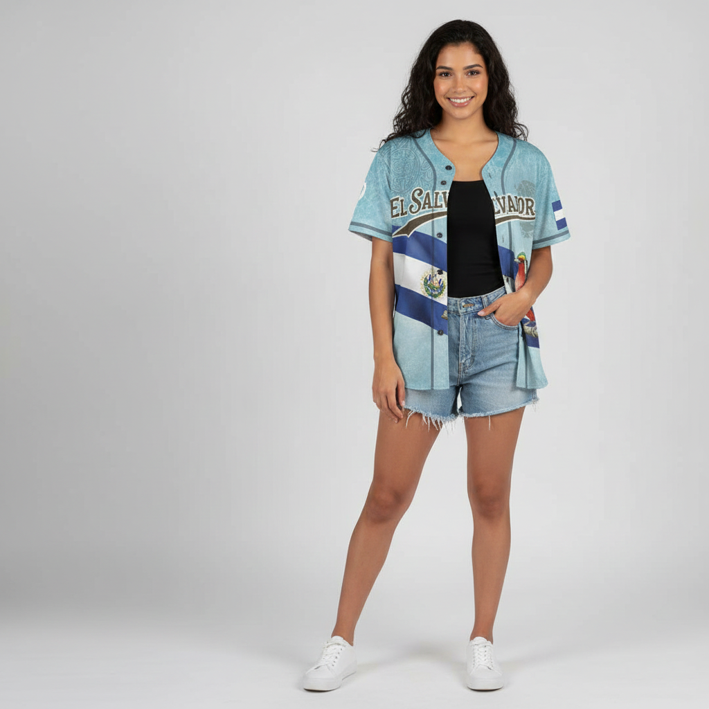 El Salvador Baseball Jersey - Volcano & Quetzal Bird Print, Flag Design - Customizable Name/Number