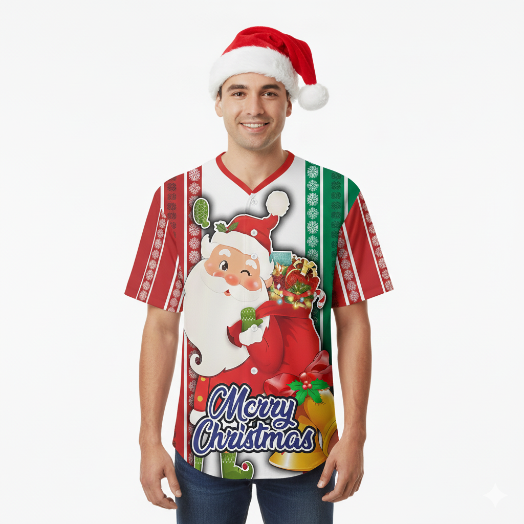 Keywords: Mexico Christmas Jersey, Mexican Flag Shirt, Merry Christmas Mexico, Ugly Christmas Baseball Jersey, Holiday Santa Shirt, Red White Green Stripes, Mexican Pride, Christmas Gift Idea, Unisex Holiday Jersey, Mexican Posada Wear.